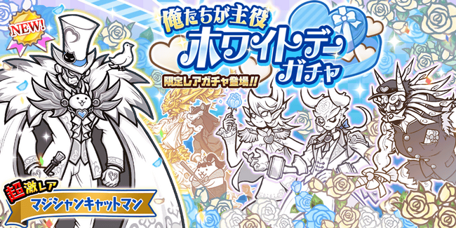 期間限定レアガチャ「ホワイトデーガチャ」に新限定キャラクター「マジシャンキャットマン」登場!