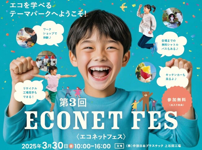 株式会社中部日本プラスチック(静岡県浜松市、代表取締役:雪下社長、以下CNP)は、2025年3月30日(日)に、上石田工場にて環境をテーマにした体験型イベント「エコネットフェス」を開催します。