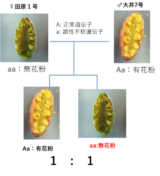 図-1:雄性不稔遺伝子の遺伝性と雄性不稔となる仕組み