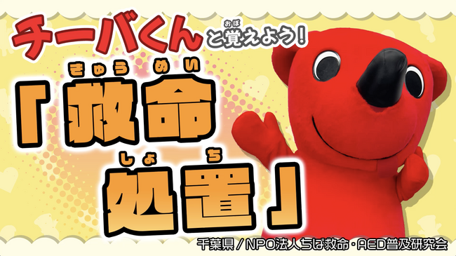 救命の知識は、あなたや大切な人の命を救う力になります。そこで千葉PUSHでは、AEDの使い方や救命処置の基本を、千葉県マスコットキャラクター「チーバくん」と一緒に楽しく学ぶことができる動画「チーバくんと覚えよう!救命処置(心肺蘇生とAEDの使い方)」の監修を担当しました。