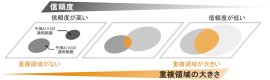 図1 複数の予測AIの信頼度の高さと、それぞれの適用範囲*3が重複する領域の大きさの関係性
