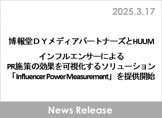 博報堂DYメディアパートナーズとHUUM、インフルエンサーによるPR施策の効果を可視化するソリューション「Influencer Power Measurement」を提供開始