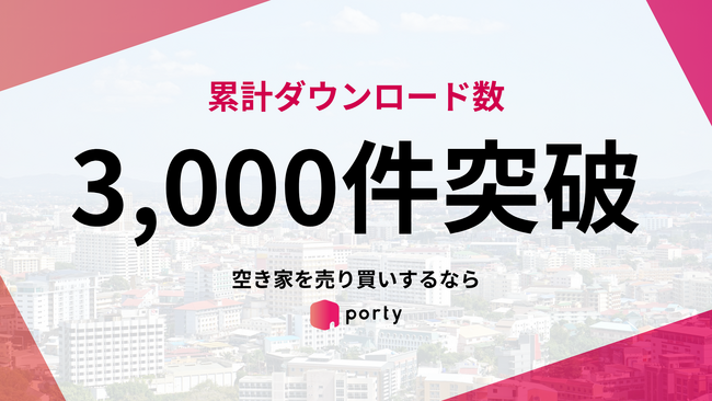 株式会社ポルティ(神奈川県川崎市、代表取締役:平 瑶平、以下「ポルティ」)は、セルフサービス型の空き家マッチングアプリ「ポルティ」が累計3,000ダウンロードを突破したことをお知らせいたします。ポルティでは今後も、空き家の売り手・買い手の双方が円滑に物件を取引できる環境を整えるべく、新機能やサポート体制の強化を進めてまいります。
