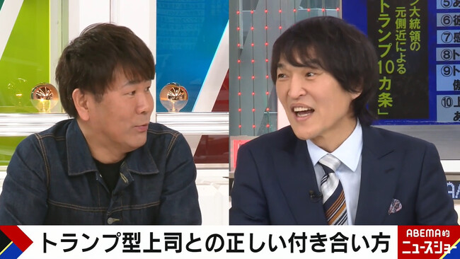 千原ジュニアとFUJIWARA・藤本が口を揃える“トランプ大統領似の先輩芸人”とは?「『俺は何でもハイハイ言うヤツと飲みたいんや!』と言われた(笑)」『ABEMA的ニュースショー』無料見逃し配信中