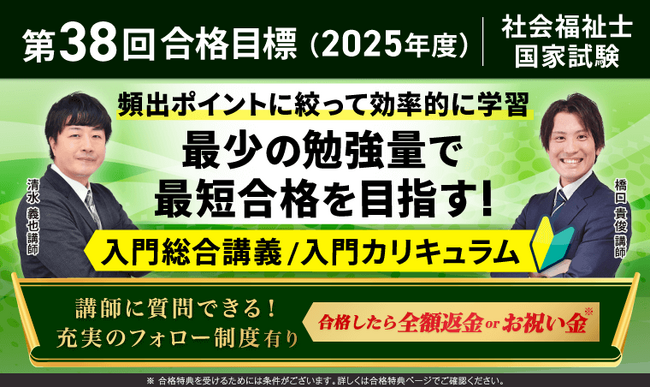 第38回(2025年度)合格目標!社会福祉士国家試験入門総合講義/入門カリキュラムリリース!