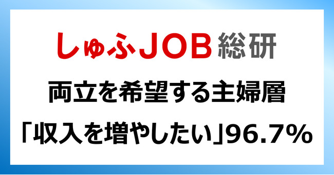 主婦層96.7%が「収入を増やしたい」/ 増やす方法:「転職」59.9% 「副業」55.8%