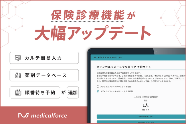 medicalforce、「保険診療機能」を大幅にアップデート 皮膚科・形成外科をはじめとするクリニックの患者体験向上・業務効率化に貢献