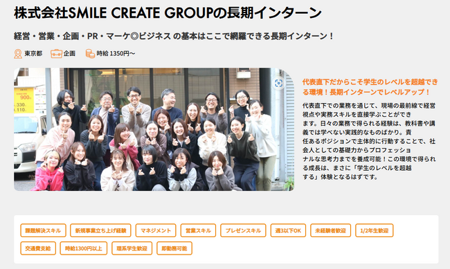 株式会社SMILE CREATE GROUP 、ココシロインターンで企画職の長期インターン求人を掲載開始