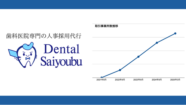 歯科業界に特化した人事・採用代行事業|デンタルサイヨウブ(旧デンタルリクルート)等で採用成功率92%を誇る株式会社サイヨウブ(本社:東京都渋谷区恵比寿)は、サービススタート時(2021年)から現在に及ぶ支援事業所数が1,200施設超えとなったことを公開。
