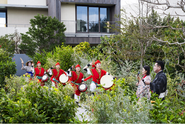 各施設が独創的なテーマで、圧倒的非日常を提供する「星のや」。海に抱かれる沖縄ラグジュアリーの最高峰「星のや沖縄」では、2025年8月1日から9月6日までエイサー(*1)を踊りながら練り歩く沖縄伝統の「道ジュネー」を体験する「しちぐゎちの集い」を開催します。沖縄の夏の風物詩でもある「道ジュネー」に参加するほか、客室のバルコニーからも観ることができます。夏の時期に沖縄各地でみられる「道ジュネー」から、沖縄の文化を体感できるプログラムです。ワークショップでは地域ごとのエイサーの違いや、歌に込められた想いに触れます。滞在を通して琉球王朝時代から続く風習や文化を知り、豊かな時間を過ごします。