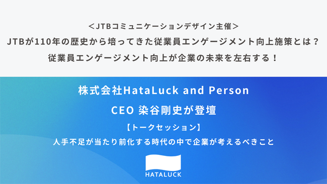 サービス業の生産性とエンゲージメントを向上することを目指す株式会社HataLuck and Person(本社:東京都中央区、以下「HATALUCK」)の代表 染谷剛史は、JTBコミュニケーションデザイン(本社:東京都港区、代表取締役 社長執行役員:藤原 卓行、以下JCD)が開催する公開セミナーで、飲食・ホテルなどのサービス業で深刻化する人材不足に対し、エンゲージメント経営の重要性と解決策について講演します。