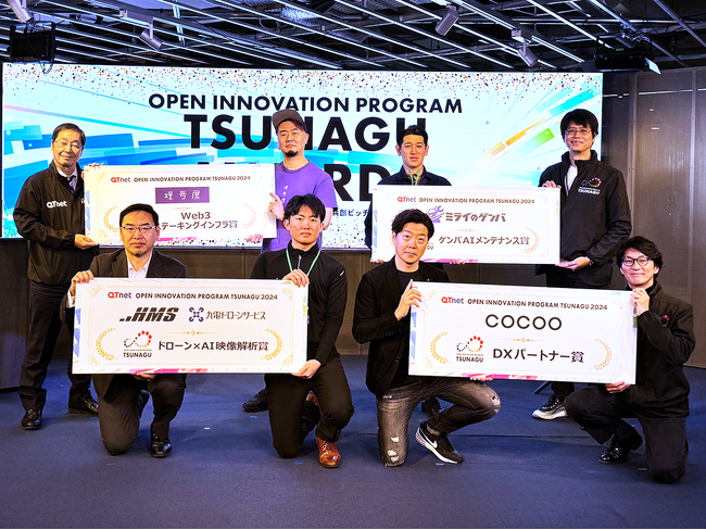 株式会社QTnet(本店:福岡市、代表取締役社長:小倉 良夫)は、新たな事業を共創するオープンイノベーションプログラム「TSUNAGU(つなぐ)2024」 において、QTnetと取り組みを実施した以下の4件について特別表彰を行いました。