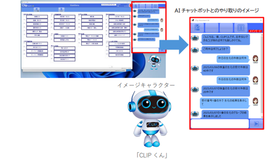 音声操作可能なチャットボットを搭載し、イメージキャラクター「CLIPくん」がユーザーをサポートします。