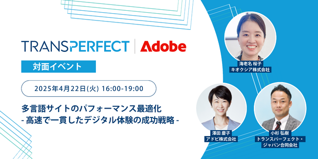 2009年からパートナーシップを築き、200社以上のグローバル企業を共同で支援してきた、アドビ社とトランスパーフェクト社が、この度共催で対面形式のイベントを開催します。