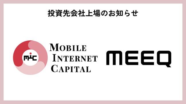 モバイル・インターネットキャピタル株式会社(代表取締役:元木新、本社:東京都千代田区、以下MIC)は、当社が投資を行うミーク株式会社(本社:東京都千代田区、代表取締役:峯村竜太、以下ミーク)が東京証券取引所グロース市場へ新規上場(IPO)致しましたことをお知らせ致します。