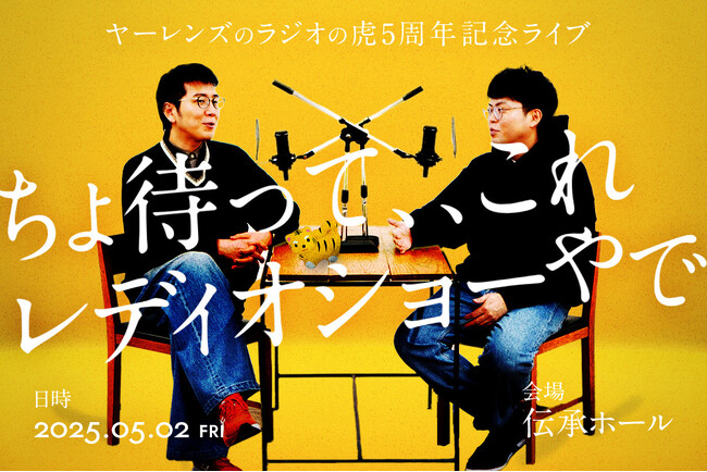 【お笑いラジオアプリGERA】ヤーレンズのラジオの虎 5周年記念ライブ「ちょ待って、、これレディオショーやで」原口あきまさがゲスト出演決定!配信も実施