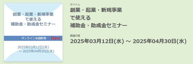 【3/20より】「創業・起業・新規事業で使える補助金・助成金セミナー(税抜500円/有料会員は無料)」の配信を開始しました【助成金なう】