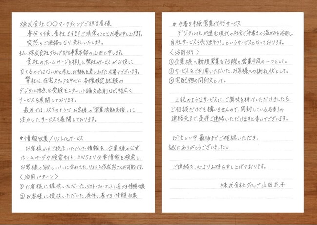 グロップ、デジタル時代にこそあえて!「手書き○○営業代行サービス」の提供を開始