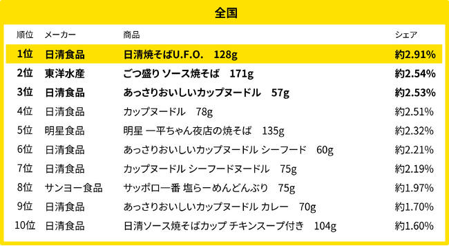 全国のカップ麺売れ筋ランキング(2025年2月)