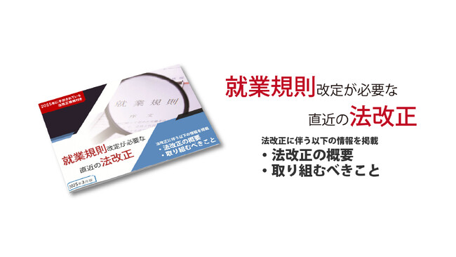 合同会社傍楽グループの社会保険労務士事務所インサイドフィールド(滋賀県東近江市、代表:内野学)は、2025年4月に育児介護休業法などの改正が施行されることをうけ、労務分野における2025年、及び直近の法改正情報と会社が取り組むべきことをまとめた資料「就業規則改定が必要な直近の法改正」を今月改定リリースしました。