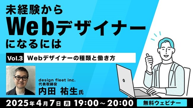 株式会社クリーク・アンド・リバー社(C&R社)は4月7日(月)・21日(月)に、WebデザイナーなどWeb業界でのキャリアをめざす方を対象に、無料のオンラインセミナー「未経験からWebデザイナーになるには」を開催します。