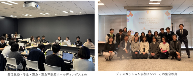 また、集計データを元に蟹江研究会・東急・東急不動産ホールディングスの3者にてディスカッションを行い、飲食店の「食のサステナビリティ」に関する取組みや意識、課題などについて意見交換し、学生目線での提案もなされました。