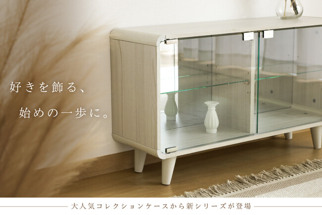 形はワイド・ミドル・ハイの3タイプを用意。コレクション数やおうちのスペースに合わせて選択できます。コレクションの種類や飾り方に合わせて選ぶことで、理想のディスプレイを実現し、空間をより魅力的に演出できます。