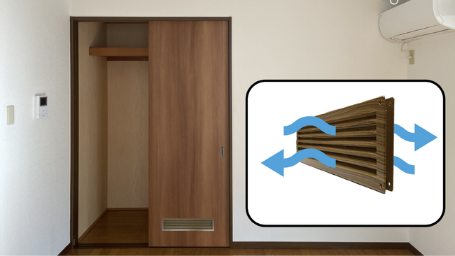 通常、押入れやクローゼットの湿気対策には、定期的に戸を開け放ち、換気をする必要がありますが、「ガラリ(換気窓)付きフラッシュドア」であれば、そのような手間はかかりません。