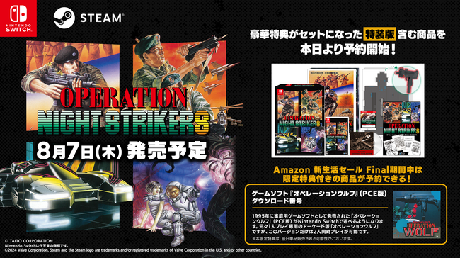 株式会社タイトー(本社:東京都新宿区、以下タイトー)は、Nintendo Switch(TM)用ソフト『オペレーション・ナイトストライカーズ』のパッケージ版および関連商品を本日より予約開始することをお知らせいたします。
