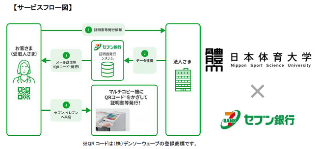 株式会社セブン銀行(本社:東京都千代田区、代表取締役社長:松橋 正明)は、2024年2月8日(木)に開始した「コンビニ証明書受取サービス」※1の第2弾として日本体育大学(所在地:東京都世田谷区、学長:石井 隆憲)と、サービスの提供に関して合意しました。これにより、2025年5月頃から日本体育大学の卒業生および在学生は全国のセブン-イレブンに設置するマルチコピー機※2で卒業証明書・成績証明書等の各種証明書類を受け取れるようになります。