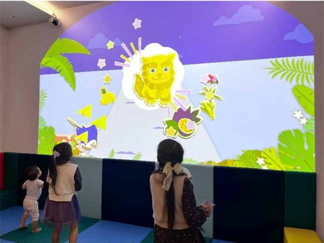 このほか、安全性を考慮したクッション性の高い遊具を採用し、カラフルで明るい空間を実現。スペースの一角には青空をイメージしたボルダリングエリアを設置いたしました。見事上まで登ることができると、とあるキャラクターをイメージしたボタンを押すことができ、音が鳴る仕掛けをお楽しみいただけます。