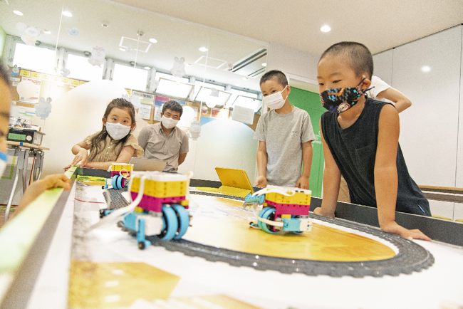 レッスンのロボットには、子どもたちに馴染みあるレゴ社「レゴ エデュケーション SPIKEプライム」を採用している他、2人につき1台のロボットで学ぶペアラーニングやプレゼンテーションの機会を通して、将来に必要なスキルを学べるのも特徴です。