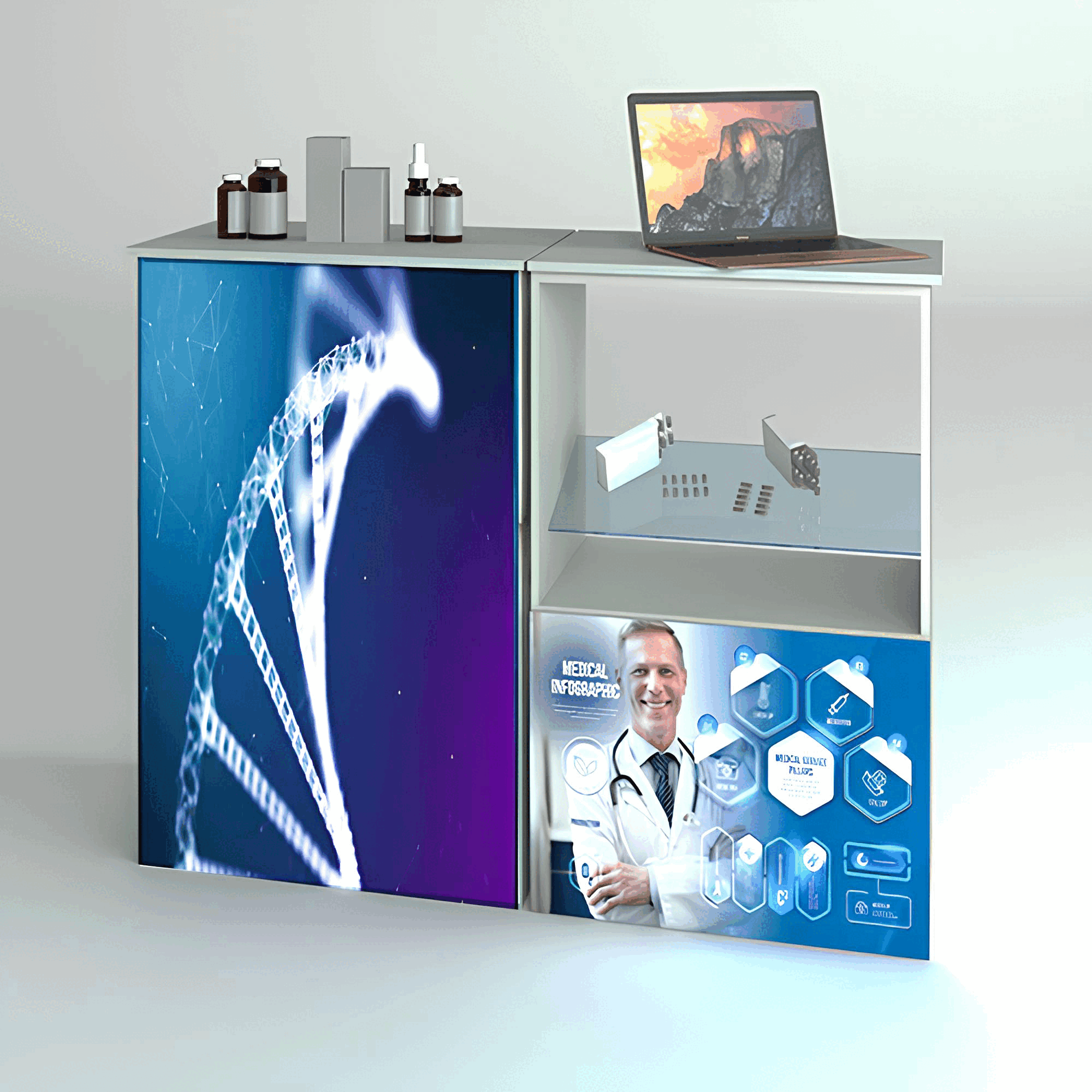 製薬 展示会&セミナー同時開催において、自社製品・技術を最大限にアピールするためには、集客力ある!視認性の高い目立つ!展示ブース作りがポイント。