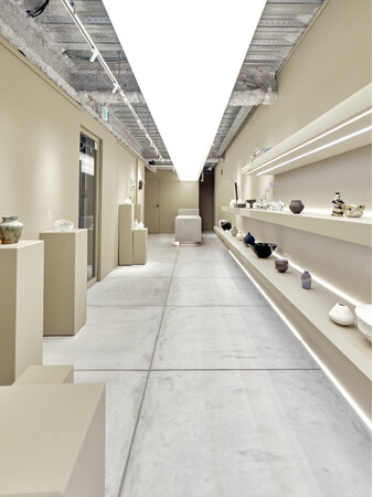 磊では「花を活けずとも空間を引き立てる作品」をコンセプトに、現代作家が生み出す陶磁やガラス、金属など、多様な素材で作られた花器やオブジェが取り扱われています。