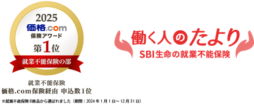 SBI生命保険株式会社(本社:東京都港区、代表取締役社長:篠原 秀典、以下「SBI生命」)は、株式会社カカクコム・インシュアランス(本社:東京都港区、代表取締役社長:結城 晋吾)が2025年4月3日に発表した「価格.com保険アワード2025年版」におけるランキングで「働く人のたより」が、「就業不能保険の部」で初の第1位を受賞したことをお知らせいたします。
