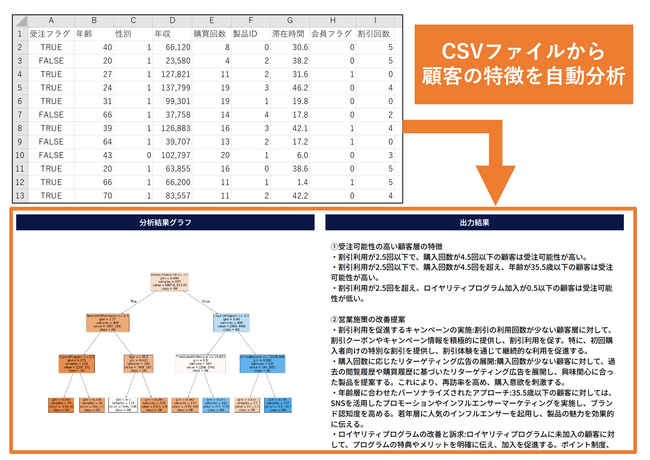 【AI受注分析】任意CSVファイルから顧客の特徴をAIが自動分析!グラフ可視化&改善提案で営業DXを推進!