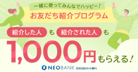 お友達やご家族に住信SBIネット銀行の新規口座開設をご紹介いただき、条件を満たしていただくと、紹介したかたも紹介されたかたも、それぞれ下記条件の達成で、現金1,000円をプレゼントいたします。