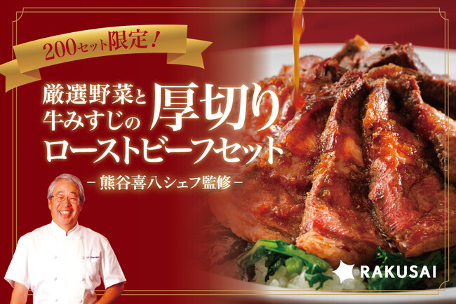 d130004-76-72611edba66fd82c04593ac87b12fd6d.pdf 楽彩株式会社(本社:東京都足立区/代表取締役社長:大崎善保)は、『厳選野菜と牛みすじの厚切りローストビーフセット』を2025年4月7日(月)より予約発売いたします。春の味覚「のらぼう菜」をふんだんに使ったバターライスやスープと一緒にいただく贅沢なセットです。熊谷喜八シェフが監修した本格レストランの味をご家庭で手軽にお楽しみください。