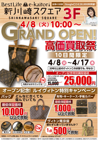 活かそう資源・活かそう人財を理念に、地域のみなさまの生活の中に「リユース」という価値を提供する、株式会社ベストライフ(本社:大阪府大阪市 代表取締役:岩本元熙)が運営する買取専門店「BestLife」が、新川崎スクエア3Fに新規出店します。神奈川エリアでは、ビナウォーク海老名、本厚木ミロード、相模大野ステーションスクエアに続き4店舗目。川崎エリアでは初出店で全国では43店舗目の出店になります。