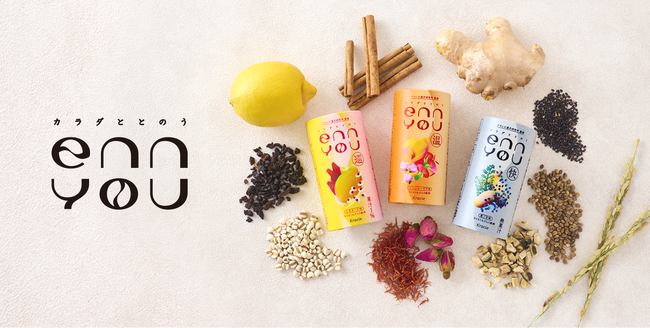 「カラダととのうenn you」は、ライスミルクをベースに、和漢エキスを配合したドリンクです。今の自分を整え、未来の健康的な自分を創るために、日常で飲みやすく続けやすいドリンクを目指しました。フレーバーは、「enn you 巡 レモネード味 / 温 ジンジャーラテ味 / 快 黒ごま味」の3種類の展開です。