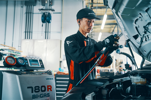 エアコンに関するご相談は、7月~9月の暑い時期に集中します。暑くなってからエアコンの効きの悪さやニオイに気付きご来店いただいた場合、多くのお客様が集中するため、すぐに解消できず、おクルマをお預かりするなどご不便をおかけするケースもあります。そのような事態を回避し、いつでも快適にエアコンを使用できるよう年間を通したエアコンの点検とメンテナンスを提案し、お客様の快適なカーライフをサポートします。
