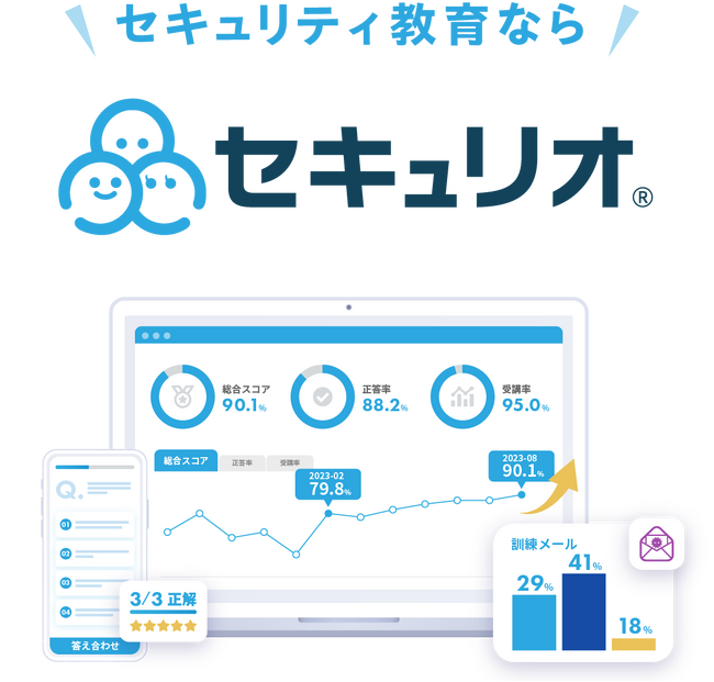セキュリオは、セキュリティ教育をだれでもかんたんに行うことができるクラウドサービスです。