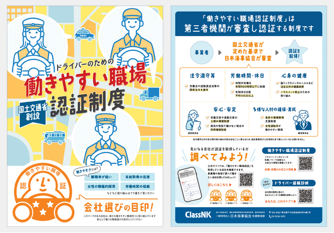 リーフレットがより多くの求職者の目に触れるよう、全国のハローワークや運輸局、業界団体、教習所など約800ヶ所に配布し掲示を依頼するとともに、要望があった認証事業所へも印刷物の提供を行い、採用活動にお役立ていただきます。[表: https://prtimes.jp/data/corp/153026/table/13_1_0f9b2990abbb172f7eafb55989d54e63.jpg ]