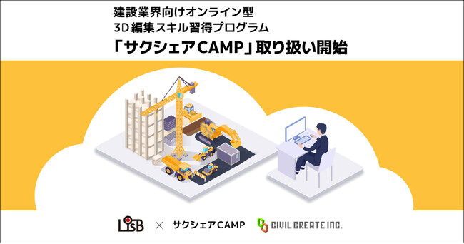 株式会社L is B(本社:東京都千代田区、代表取締役社長CEO:横井 太輔、以下「L is B」)は、CIVIL CREATE株式会社(本社:千葉県船橋市、代表取締役:川西 敦士、以下「CIVIL CREATE」)が開発・提供する建設業界向けオンライン型3D編集スキル習得プログラム「サクシェアCAMP」の取り扱いを開始しました。