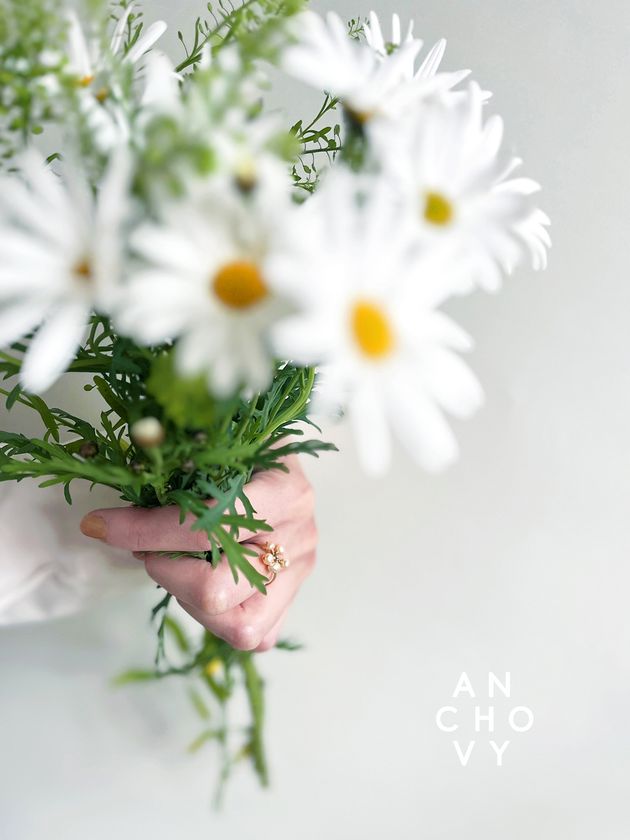 ANCHOVY ジュエリー日本発売1周年を記念した可憐なお花モチーフのリング「フラワーパールリング」は、肌馴染みの良いナチュラルピーチカラーの淡水パールをお花のように見立て贅沢に使用したリングです。
