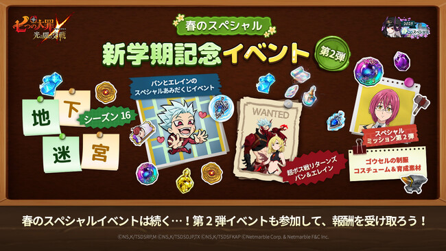本アップデートでは、他にも「春祭りスペシャルあみだくじイベント」の開催や地下迷宮シーズン16などが登場しております。