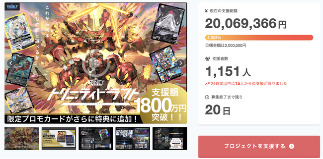 新作カードゲーム『トリニティドラフト』 クラウドファンディング支援額2000万円を突破!