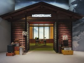 また、ブース内を進むとモンブランの歴史ある時計製造のレガシーが鮮やかに蘇るミネルバルームがあります。1912年に特許を取得したミネルバのV字型クロノグラフブリッジの形状にインスピレーションを与えた山を背景に設えたこのスペースでは、ヴィルレの時計職人が駐在し、ゲストはここで特別な時計製造技術を学ぶことができます。