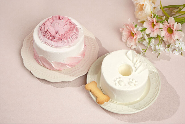犬用シフォンケーキ『Shiro』と、カーネーションをモチーフにしたデザインの『Carnation』のセット。