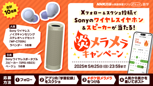 NHK英語講座を1日5分から手軽に学べる英語学習アプリ「ポケット語学」が、Xの公式アカウントにてキャンペーンを実施! 期間は2025年4月11日(金)12:00から5月25日(日)23:59まで。